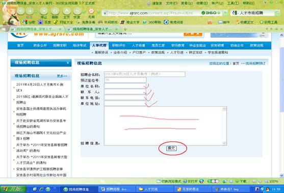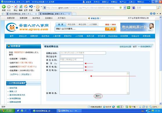 第六步:輸入相關(guān)單位、聯(lián)系人、聯(lián)系電話、招聘信息后提交;
