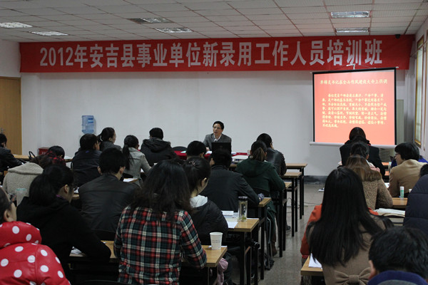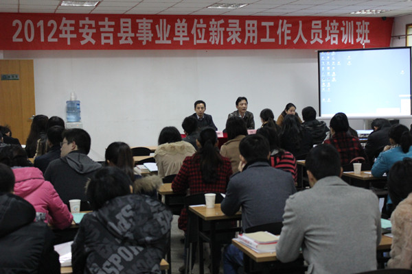 為加強(qiáng)我縣事業(yè)單位新錄用工作人員能力建設(shè),增強(qiáng)群眾觀念、服務(wù)意識(shí)和敬業(yè)精神。近日,我縣2012年事業(yè)單位新錄用工作人員培訓(xùn)班在縣人才資源開發(fā)管理辦公室一樓第二教室開班?h人力資源和社會(huì)保障局副局長(zhǎng)許虹、事業(yè)單位人事管理科副科長(zhǎng)李青等參加開班典禮。開班典禮由李青主持。