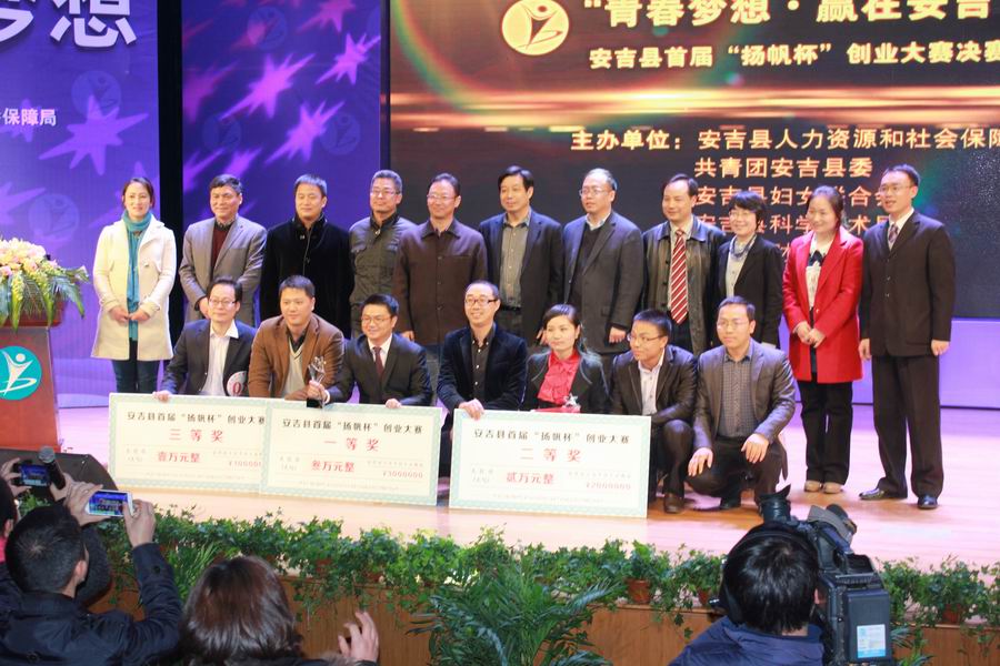 12月20日下午,“青春夢想 贏在安吉”——安吉縣首屆“揚帆杯”創(chuàng)業(yè)大賽決賽,在中德工程師學院活動中心隆重舉行?h委副書記陸為民、副縣長張云威出席并為獲獎者頒獎。